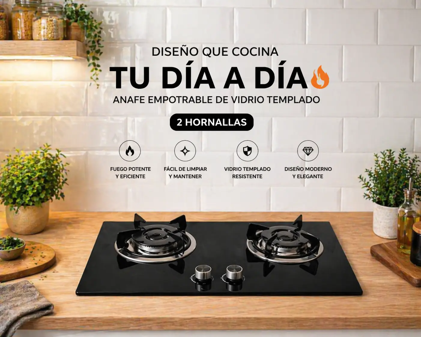 Máximo estilo, mínimo espacio. Este anafe es la solución perfecta para cocinas modernas y funcionales. Con un acabado de lujo en vidrio negro, ofrece toda la potencia de un anafe profesional en un diseño de dos hornallas que optimiza tu área de trabajo.